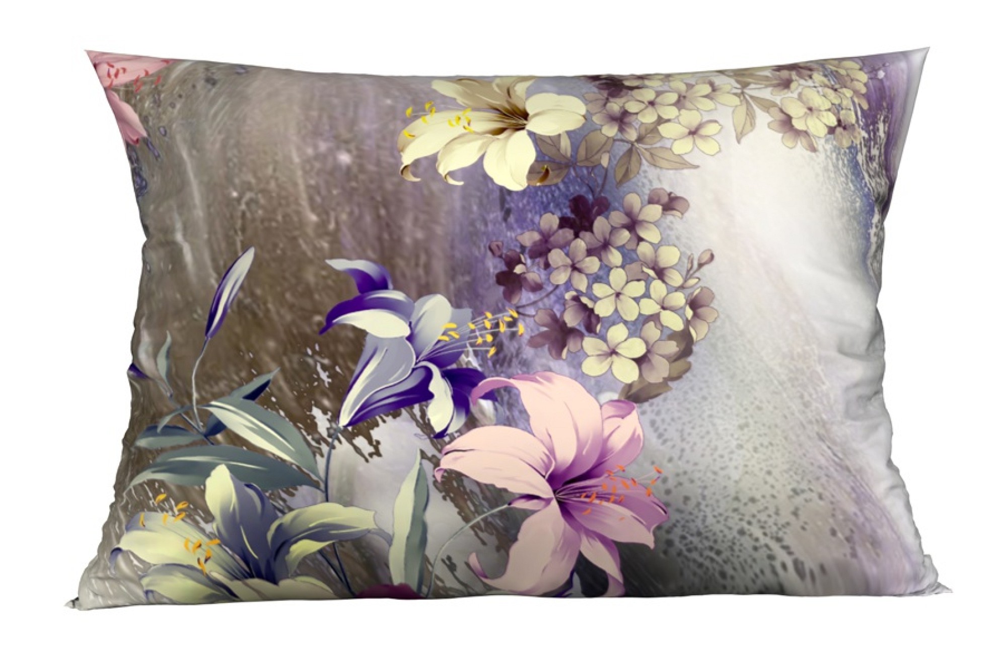 Pestrý, ale tmavý podklad obliečok zdobí bohatý kvetinový vzor.