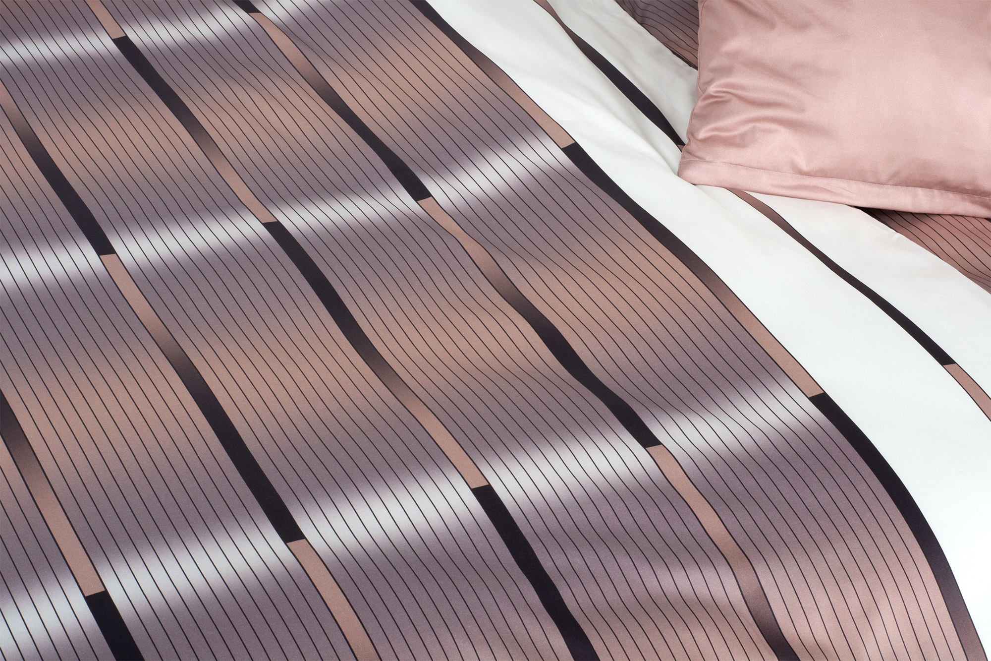 Elegantný hnedý pruhovaný vzor zdôrazňuje prirodzený lesk obliečok.