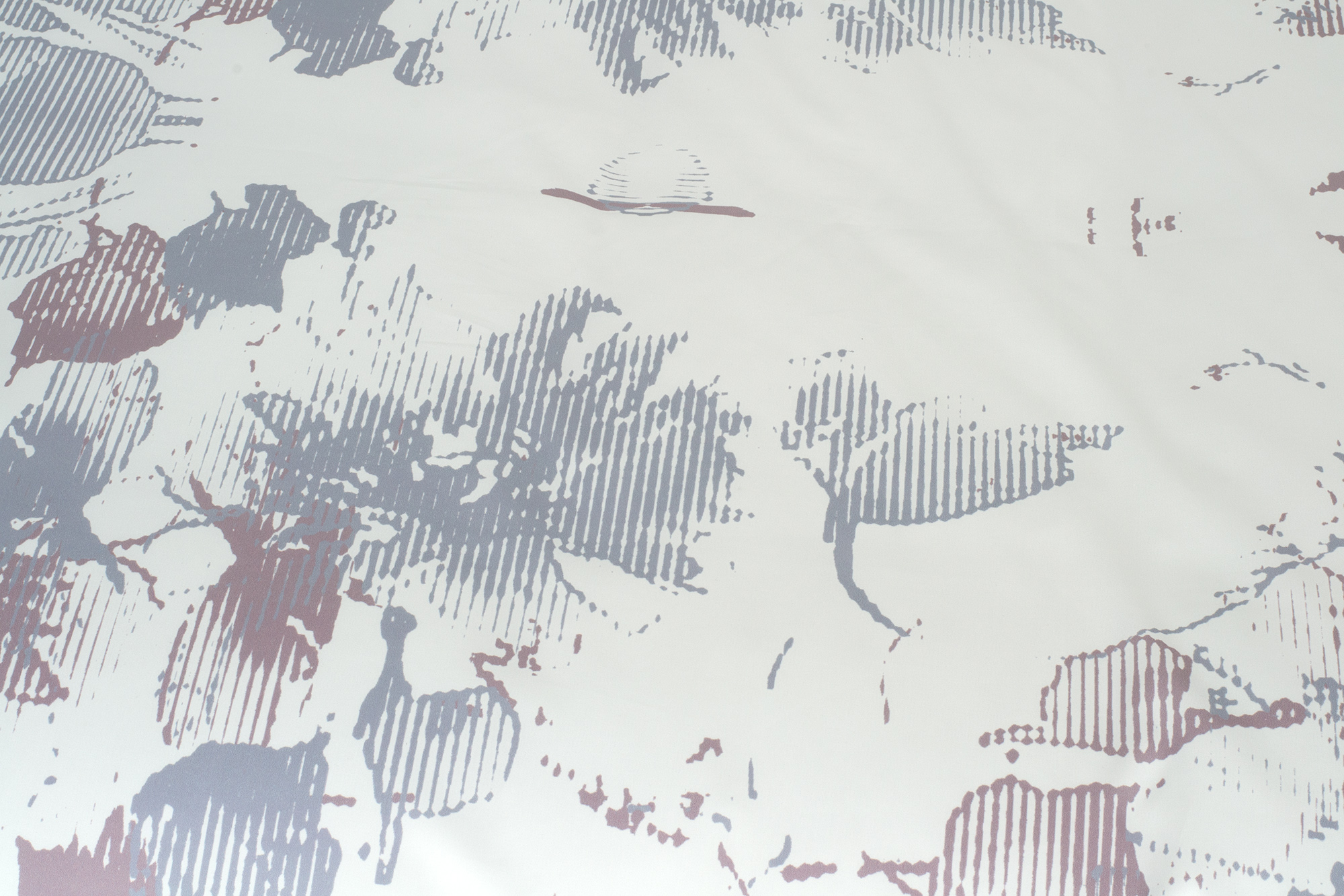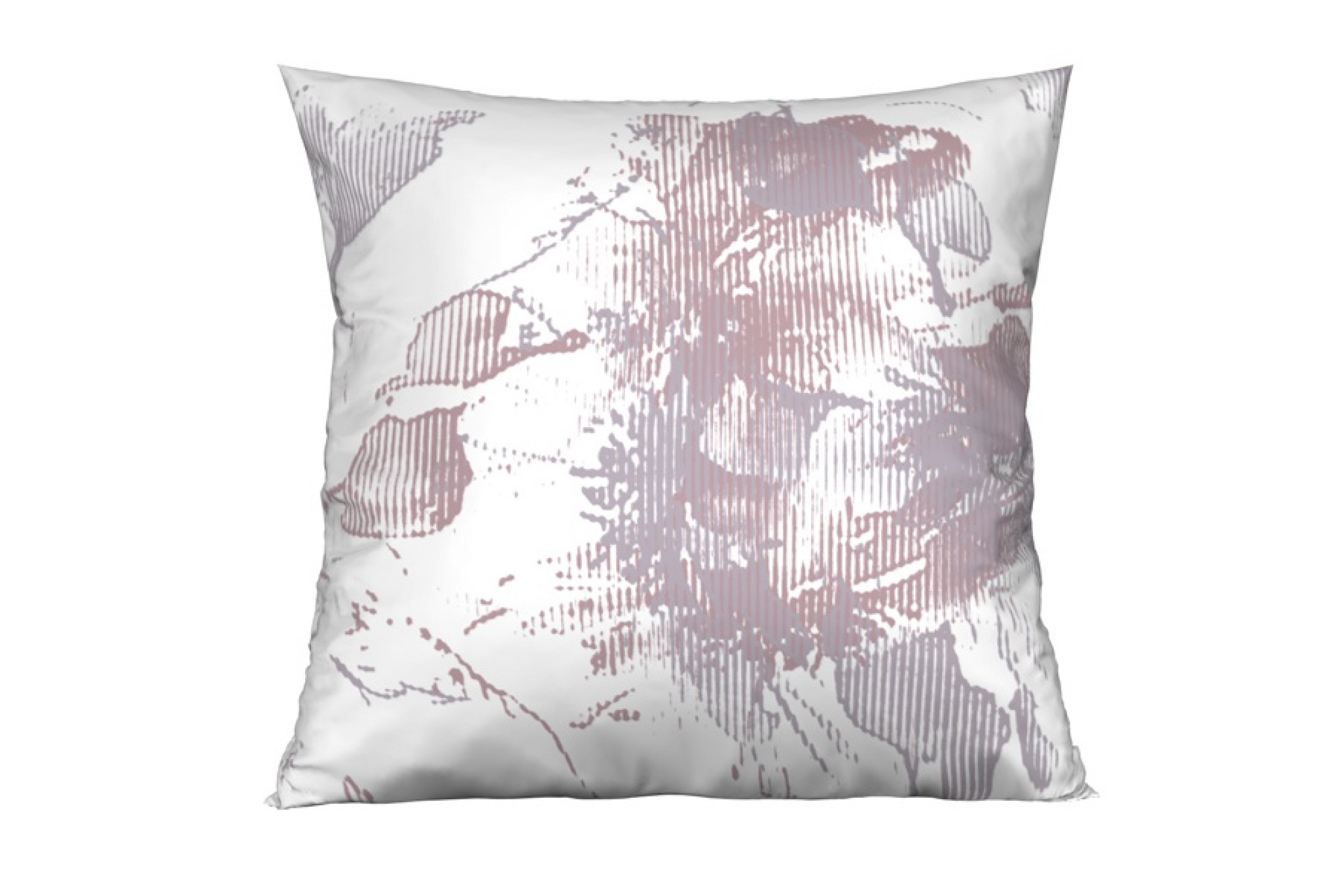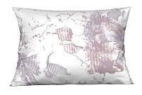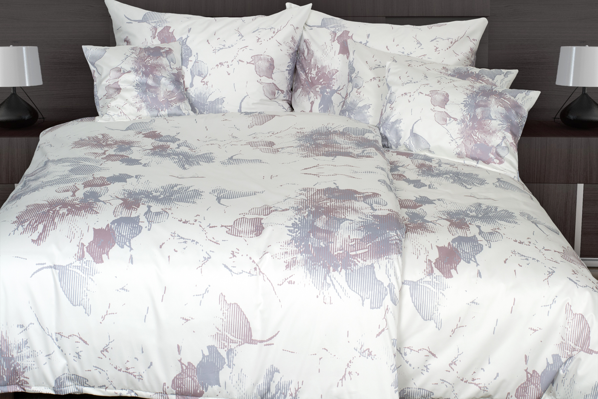 Biely podklad obliečok zdobí abstraktný kvietkovaný vzor v odtieňoch fialovej a sivo modrej.