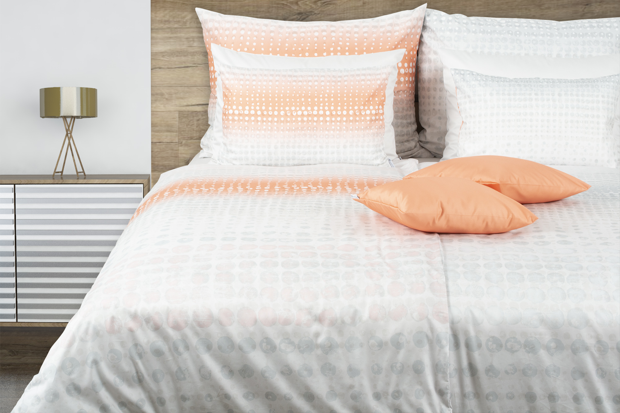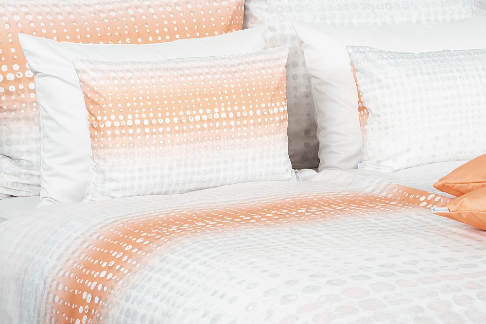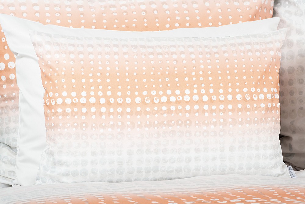 Obliečky Federico charakterizujú jemné tóny marhuľovej po béžovú doplnené drobným bodkami. S obliečkami pekne ladí béžové prestieradlo Sand alebo broskyňové prestieradlo Pfirsich.