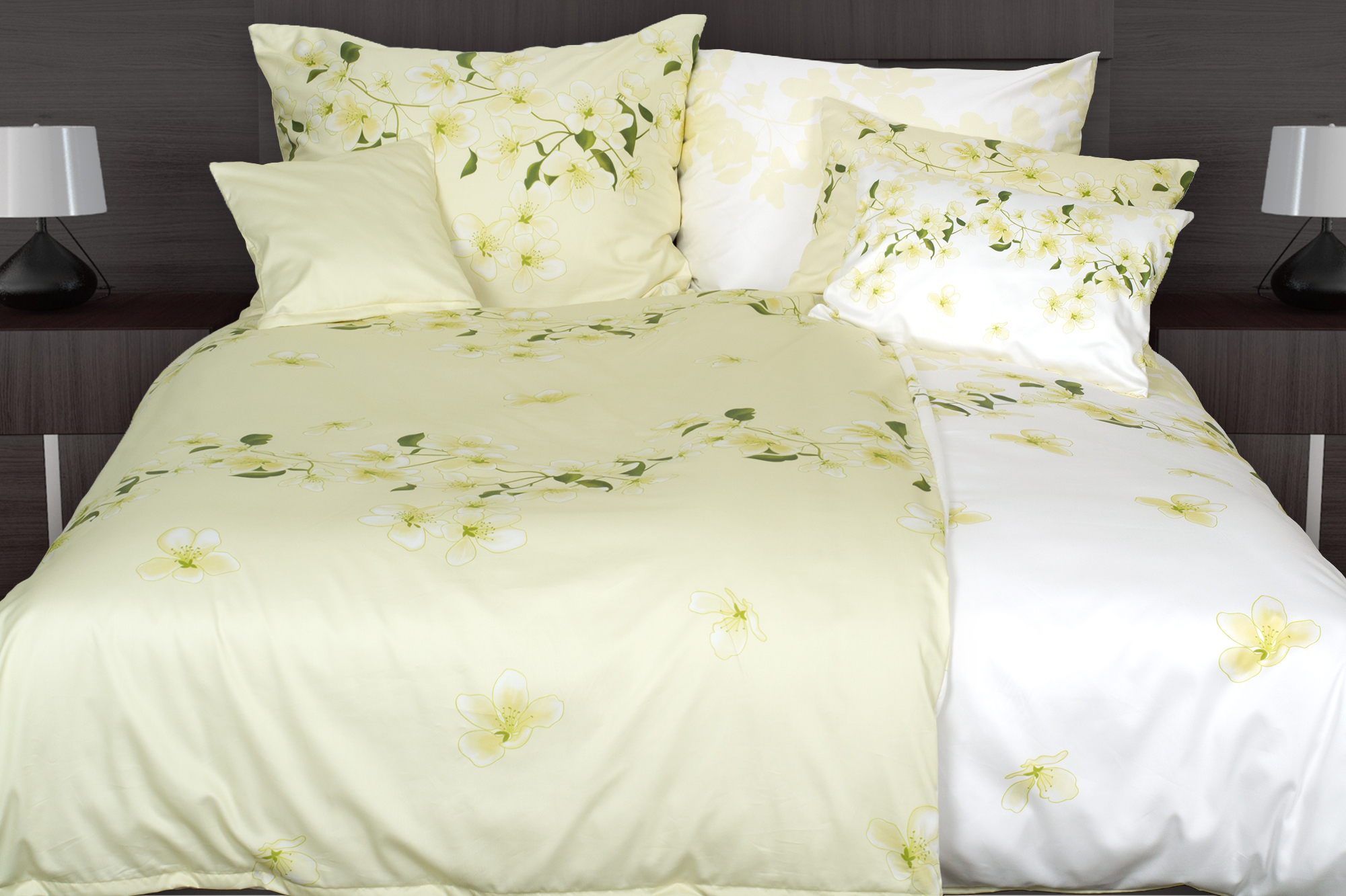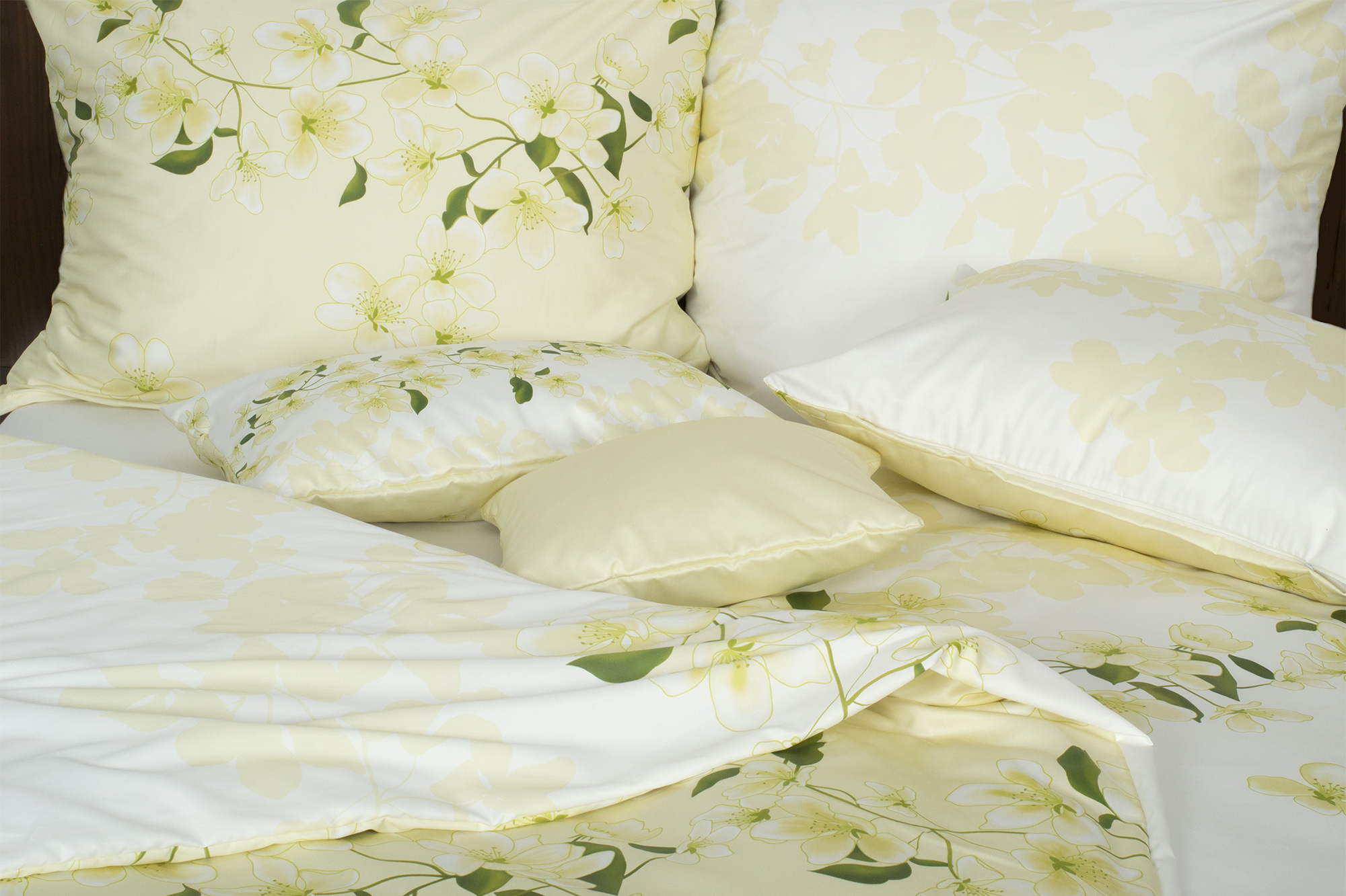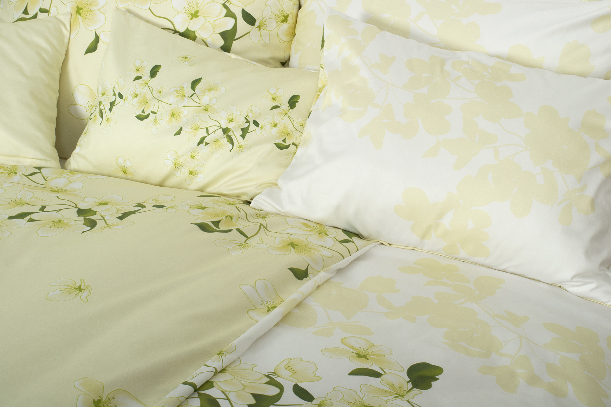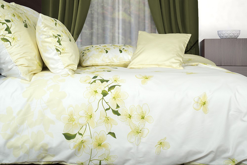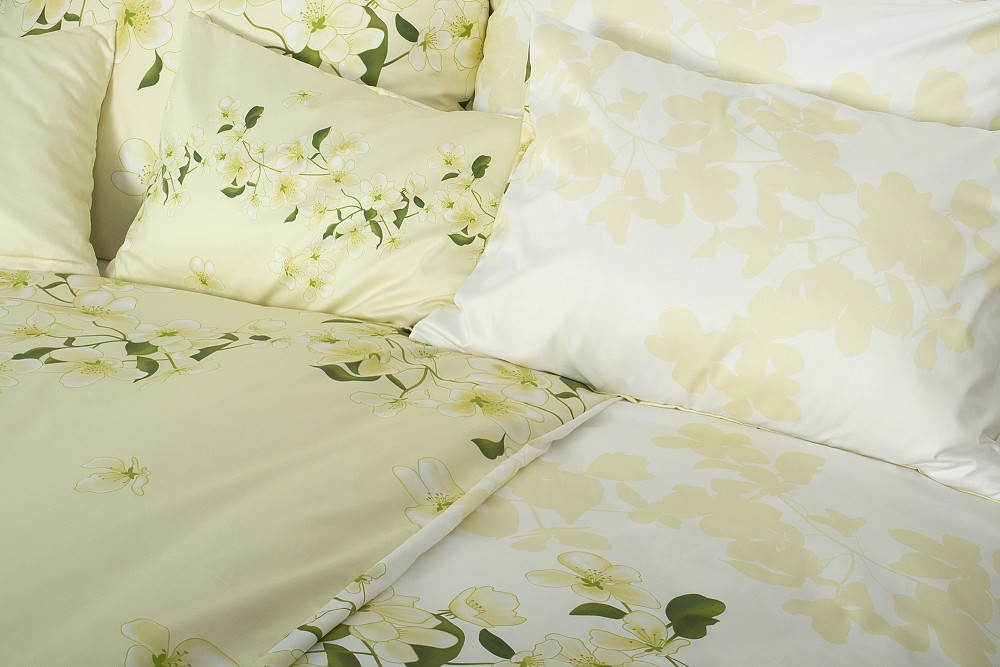 Svieže zeleno biele kvetinové obliečky.