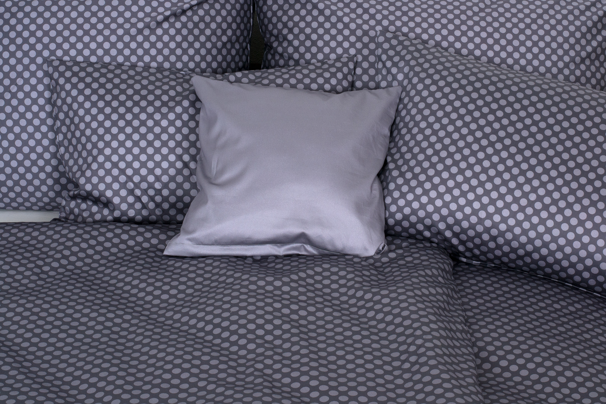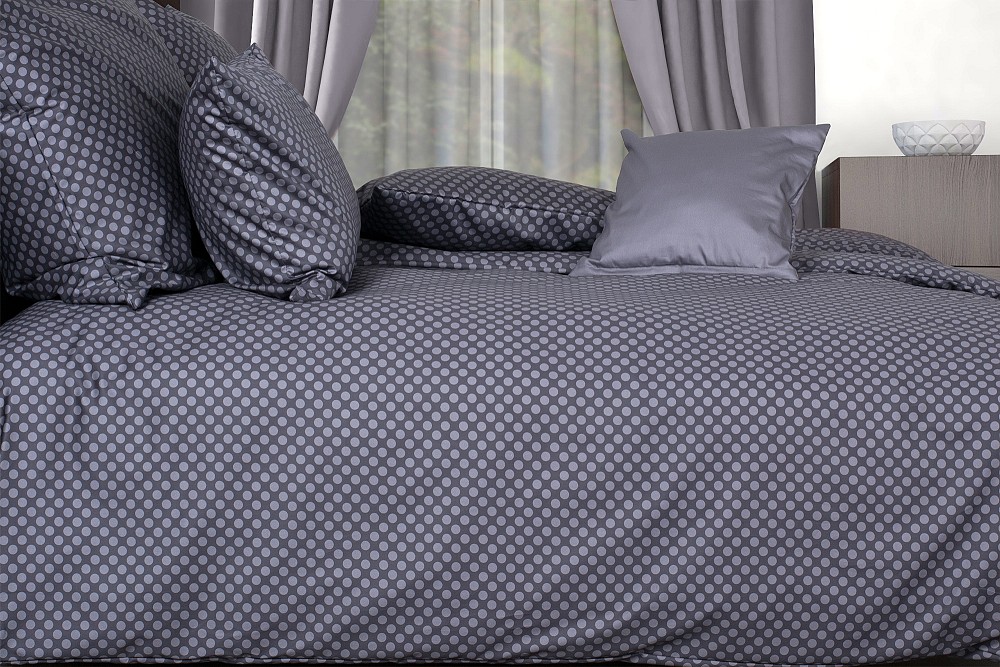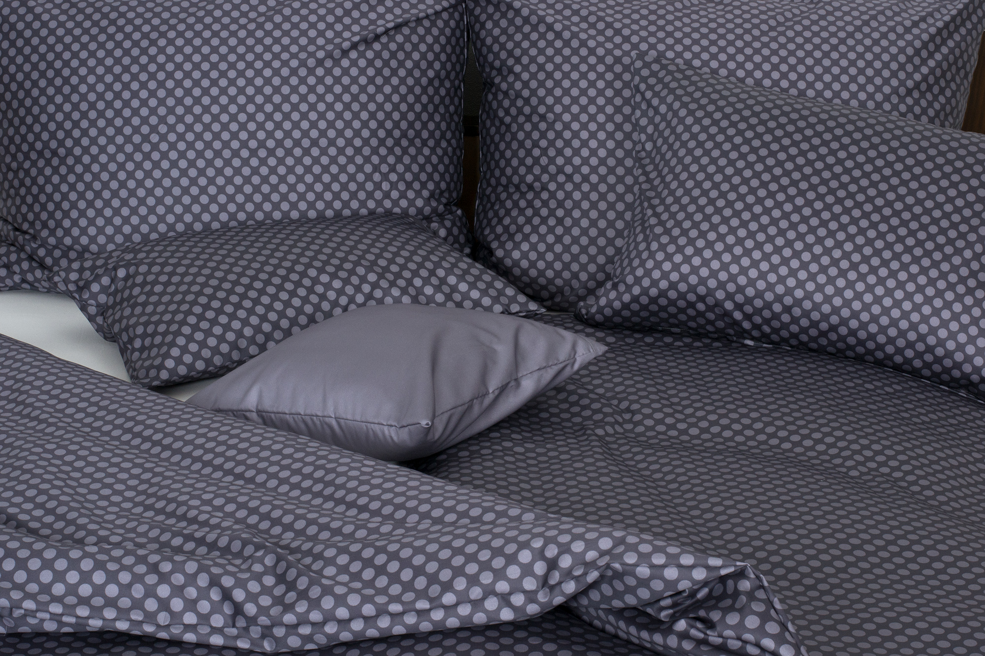 Obliečky Martinus sú hravé vďaka bodkám a eleganciu im zaisťuje šedá farba.